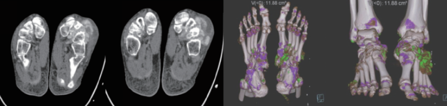 ?雙能量成像技術(shù):具有定量及成分分析功能,可用于痛風(fēng)石檢測(cè),結(jié)石成分分析,骨髓顯像等;