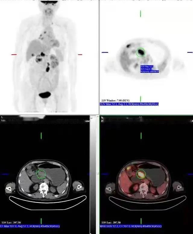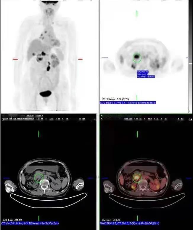 提示: 胰腺鉤突病變,糖代謝增高,考慮胰腺癌可能性大