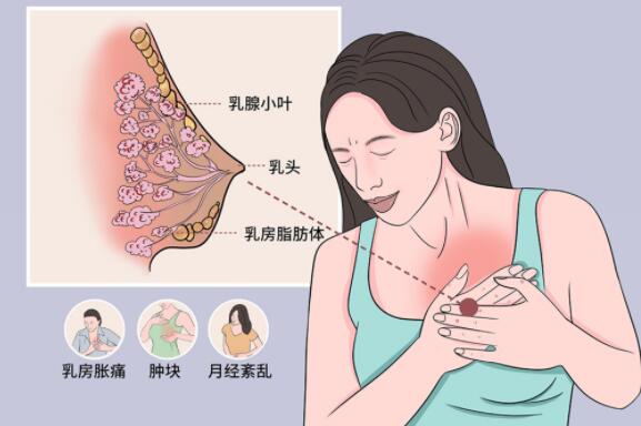 乳腺錯構瘤比較常見的癥狀有月經(jīng)周期改變、乳房皮膚水腫增厚。