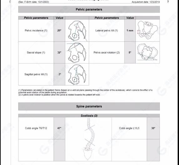 15歲女性,發(fā)現(xiàn)特發(fā)性脊柱側(cè)彎3年,于2019年1月23日來到廣東高尚醫(yī)學(xué)影像診斷中心行EOS檢查,2019年2月行手術(shù)治療后多次到中心行EOS復(fù)查。