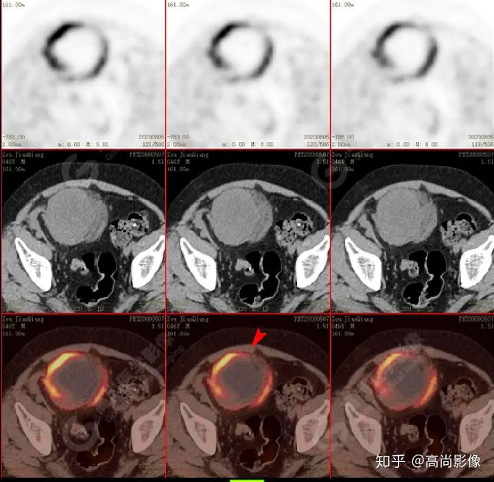 ↑移植腎下部等密度腫塊,代謝環(huán)狀增高,SUVmax13.4,中心代謝缺損