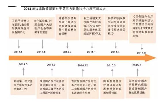 國內(nèi)的醫(yī)學(xué)影像中心復(fù)制了這種模式,但初期受限于人才引進(jìn)難、資金籌集少、隱形歧視和政策限制等原因,彼時獨立醫(yī)學(xué)影像中心在國內(nèi)發(fā)展緩慢。2016年8月,衛(wèi)計委發(fā)布《醫(yī)學(xué)影像診斷中心基本標(biāo)準(zhǔn)和管理規(guī)范(試行)》,首次明確了第三方醫(yī)學(xué)影像診斷中心獨立法人地位,其后隨著“十三五”醫(yī)改規(guī)劃中“加快社會辦醫(yī)”的內(nèi)容推出和醫(yī)療改革的不斷推進(jìn),行業(yè)終于迎來轉(zhuǎn)機(jī)。