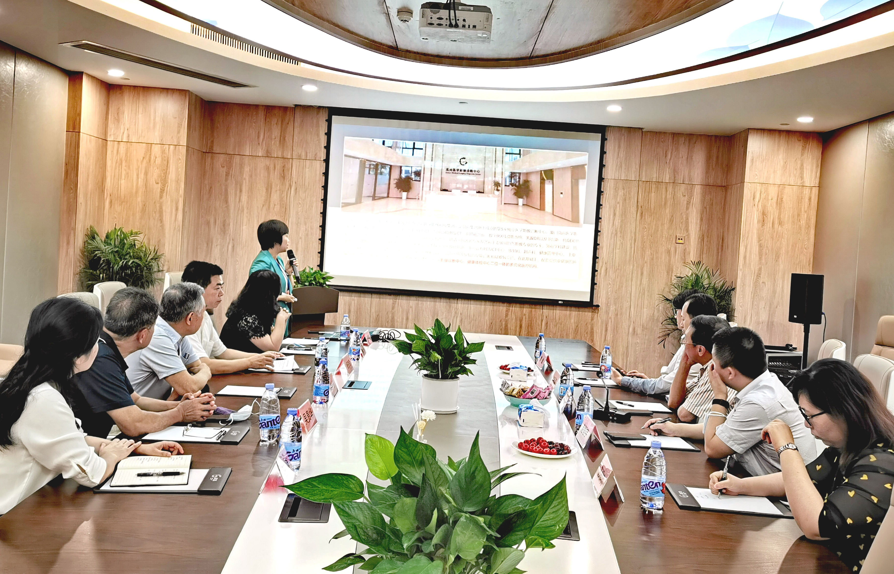 廈門大學(xué)附屬心血管醫(yī)院領(lǐng)導(dǎo)一行人首先參觀了廈門高尚醫(yī)學(xué)影像診斷中心與廈門高尚健康體檢, 廈門高尚醫(yī)學(xué)影像診斷中心副院長湯秀容向大家介紹了我中心前沿的診斷設(shè)備,醫(yī)師團隊、診療流程、特色項目等。
