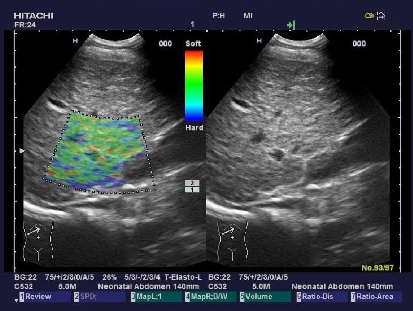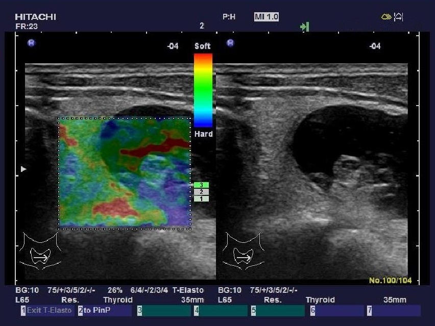 “ARIETTA 70”加載了彈性成像功能,實時組織彈性成像技術(shù)是根據(jù)人體不同組織受壓后的變形差別,將其不同的組織的彈 性系數(shù)差異用不同的彩色顯示出來的新成像診斷技術(shù)。
