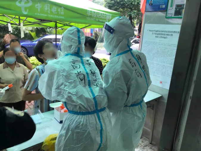 本次廣東高尚醫(yī)學(xué)影像參與疫情防控的黨員先鋒隊(duì)成員有:柏瑞、程琦、柳偉坤、王俊等一行十幾名醫(yī)護(hù)人員,其中柏瑞、王俊以及程琦等一行5人,已經(jīng)于5月30日開(kāi)始分別在黃埔街金逸-悅濤社區(qū)、越秀區(qū)流花街社區(qū)衛(wèi)生服務(wù)中心進(jìn)行防疫支援工作。到昨日3日,體檢中心的護(hù)士韓恩恩、黃新炎也參與到了流花街流花橋社區(qū)的支援中, 期間還有不少工作人員也都主動(dòng)加入了這場(chǎng)抗擊疫情戰(zhàn)役援助。