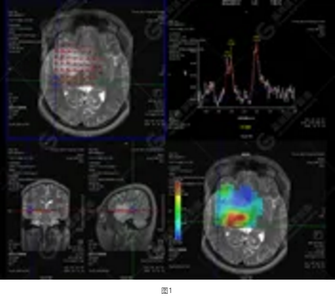 患者男,25歲,因“頭暈、頭痛1月余”來廣東高尚醫(yī)學(xué)影像診斷中心行顱腦MR平掃、增強及腦功能學(xué)檢查波譜(MRS)、擴(kuò)散張量成像(DTI)檢查。既往外院檢查提示大腦右側(cè)占位性病變。