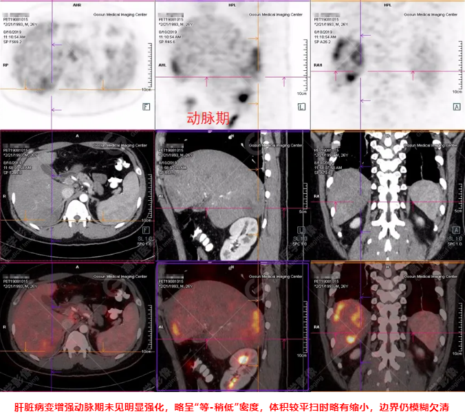 吡喹酮治療前兩天體溫驟然升高,之后體溫恢復(fù)正常,半個(gè)月后CT復(fù)查肝臟病變體積較前明顯縮小、吸收。