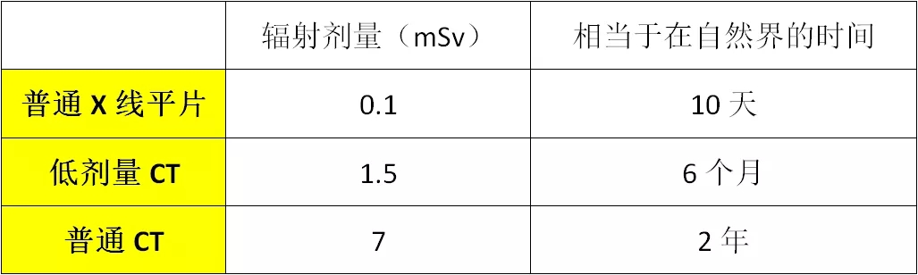人每年從自然界收到大約3mSV的輻射量,目前用于兒童的醫(yī)用X射線檢查裝置主要是DR的普通X線平片、低劑量CT以及普通CT。下面我們以單次肺部X線檢查為例: