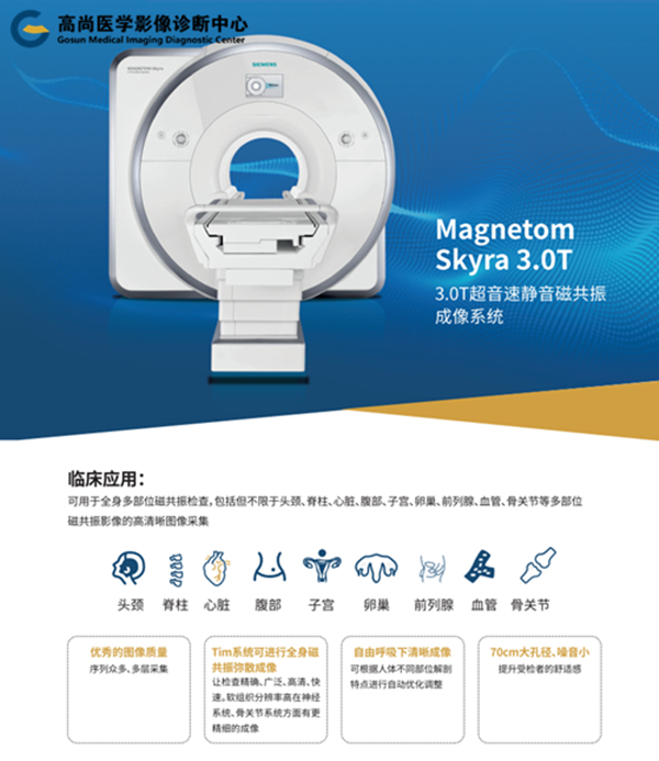 磁共振,又稱為磁共振成像,是醫(yī)學(xué)影像學(xué)中的一種?,F(xiàn)已被廣泛的用于臨床治療,成為一種成熟的臨床疾病診斷方式。一般來說,核磁共振應(yīng)用于早期腫瘤、心臟病、腦血管疾病、骨骼與關(guān)節(jié)疾病、乳腺疾病、腹腔疾病、先天胎兒畸形的檢查中,有著較高的診斷價值。